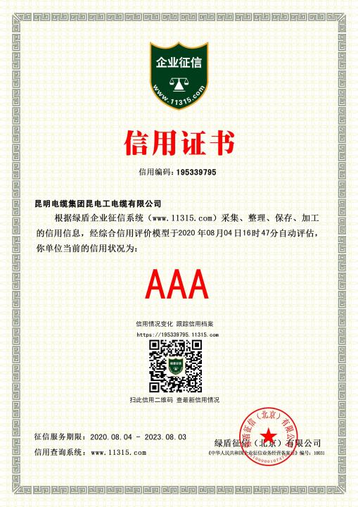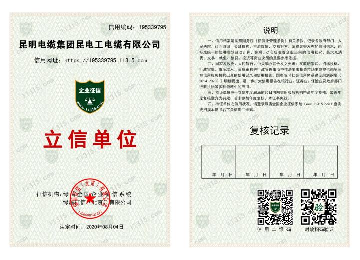 昆电工信用证书